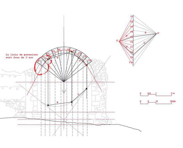En paralelo, los alumnos, por equipos, deben desarrollar el estudio físico-constructivo de un edificio histórico de Barcelona. En dicho estudio se caracterizan las etapas históricas del edificio y se analizan sus valores instrumentales, significativos y documentales. También se realiza el cálculo de empujes de arcos y/o bóvedas mediante estática gráfica para conocer el comportamiento estructural de los elementos singulares del edificio objeto de estudio y el cálculo estructural de una cercha mediante el método gráfico de Cremona.